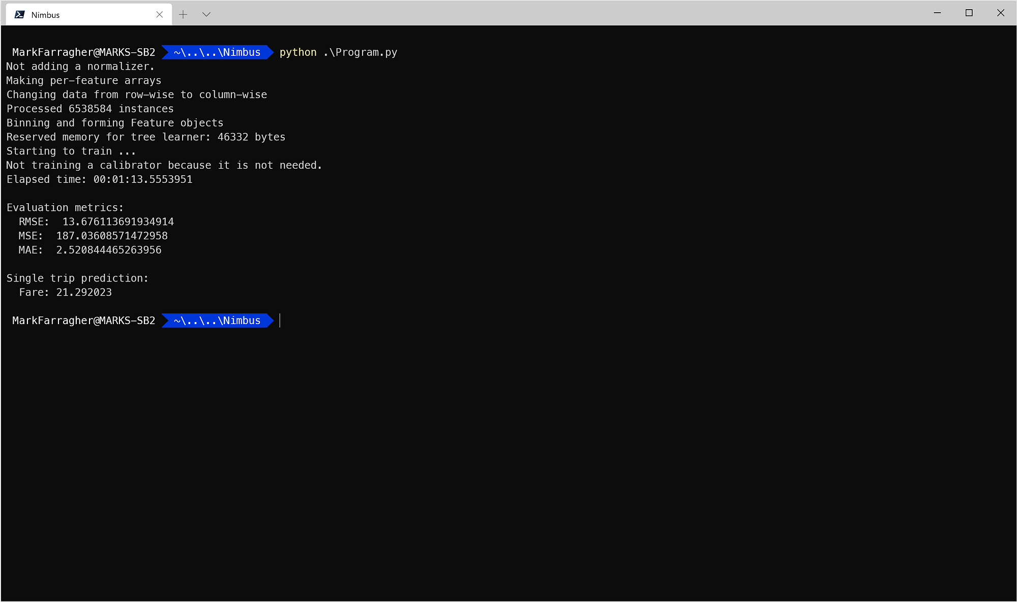 Naturally I had to try it out. I decided to port my New York taxi price prediction model to NimbusML to see what happens.