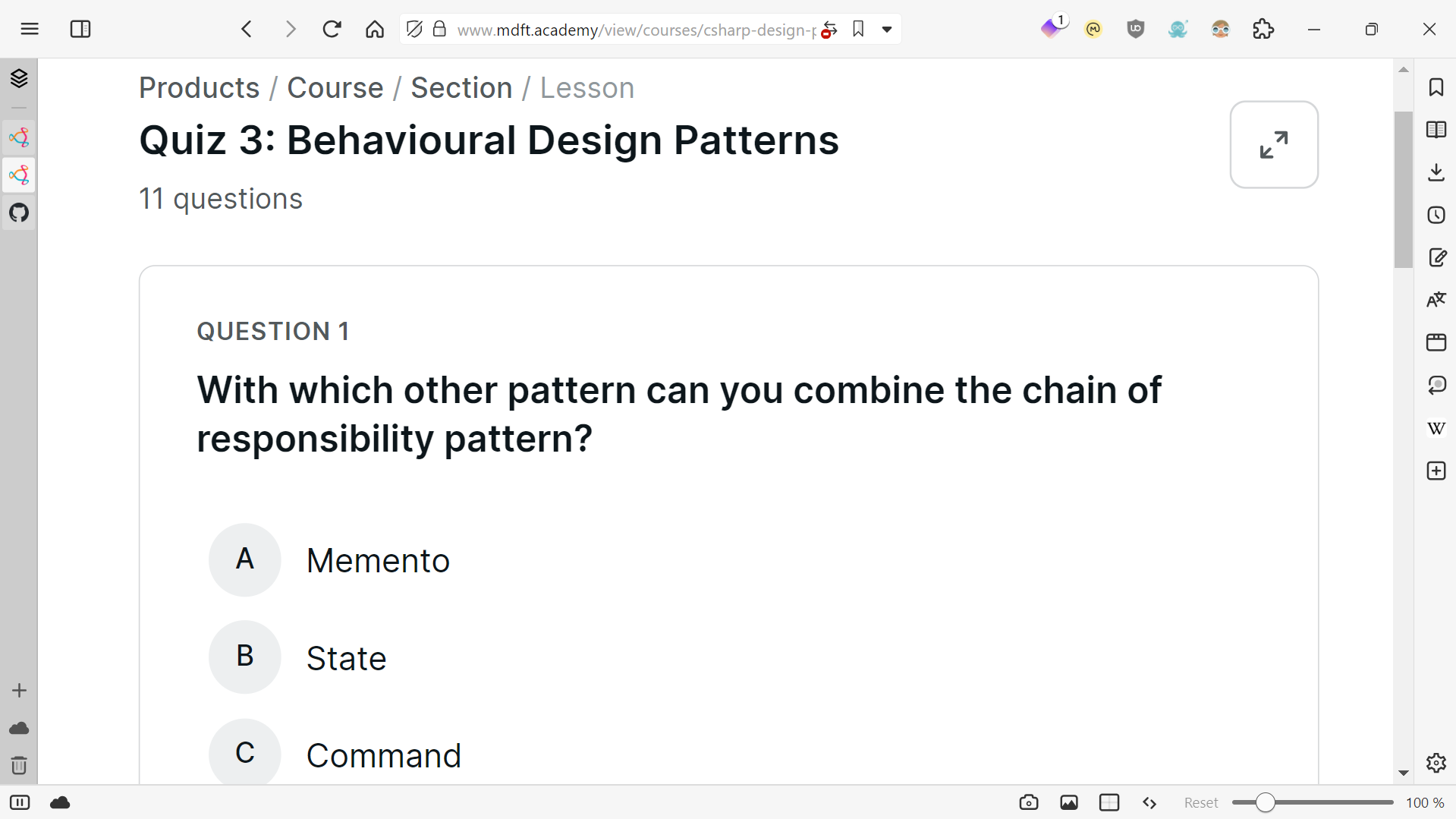 Check out this lesson preview in which I will teach you about the command pattern which defines abstract command objects and decouples command issuers and command receivers in your code.