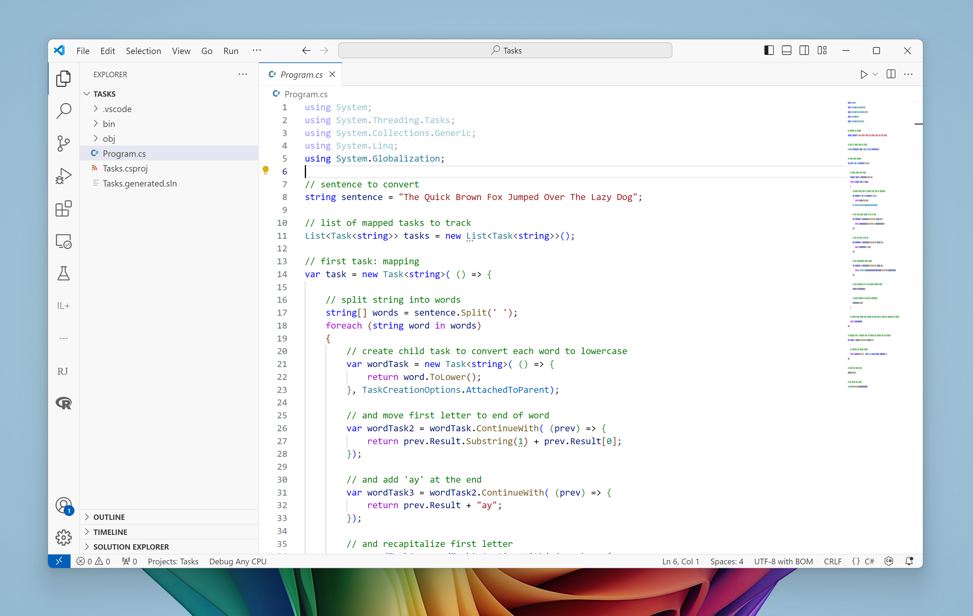 Check out this training lesson preview in which I will show you how to write a C# application that uses the task parallel library to convert a sentence to pig latin.