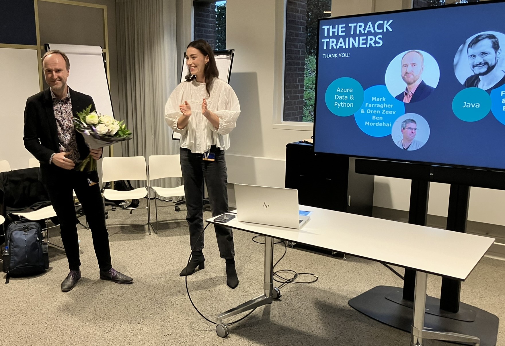 Receiving flowers after the graduation of my YEPP Azure Data students at Rabobank.